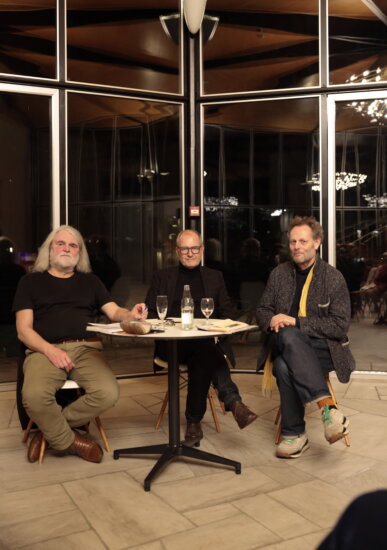 Im Gespräch mit Thomas Irmer, verantwortlicher Redakteur bei «Theater der Zeit» erörtern Olaf Nicolai und Christoph Doswald, künstlerischer Leiter von ART FLOW, die Verbindungslinien von Kunst, Theater und Kontext, insbesondere vor dem Hintergrund der Geschichte des Theaters in Baden.