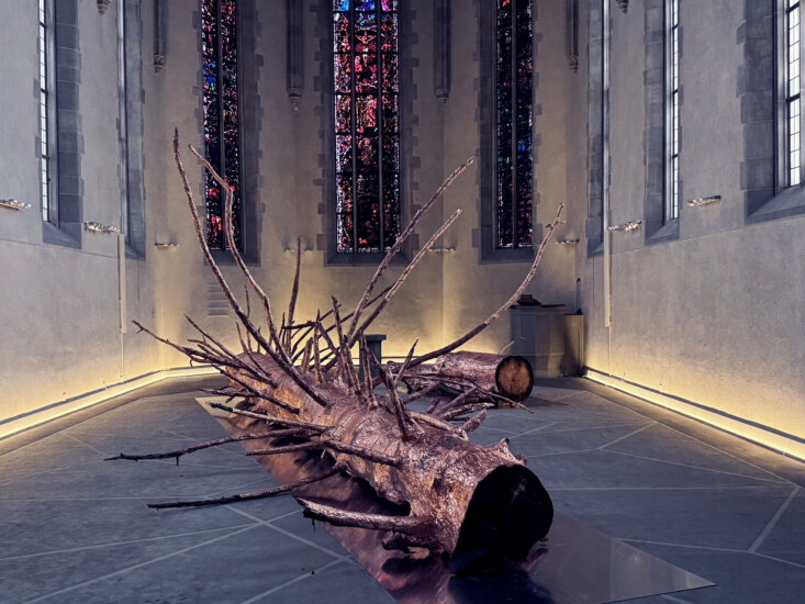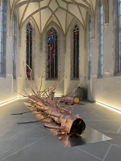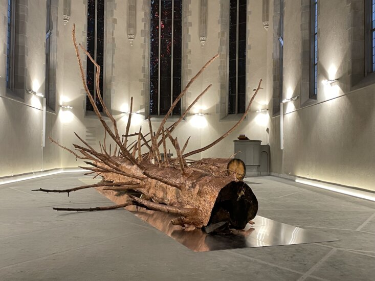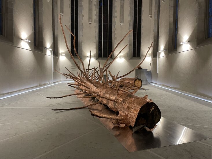 The intervention will remain on view in the Röhrenmoos forest in Dietikon until the end of 2025 and can be explored along a ten-station trail. From 12 December, a central element — a twelve-metre-long, copper-wrapped tree trunk — will be transported to the Wasserkirche, where it will be presented in a new context. Comte draws a link to the Japanese concept of Yorishiro: clearings understood as places of quietude and sacred presence. Visitors are invited to sense the pulse of the work and engage with the subtle energies of the space.