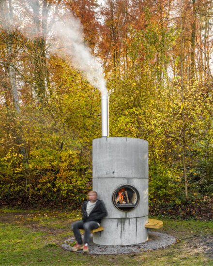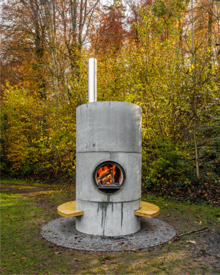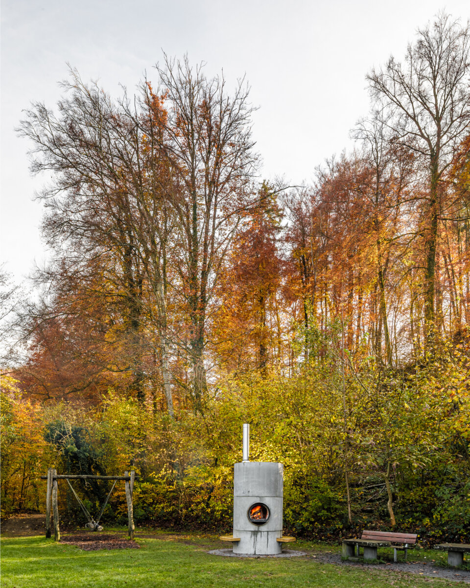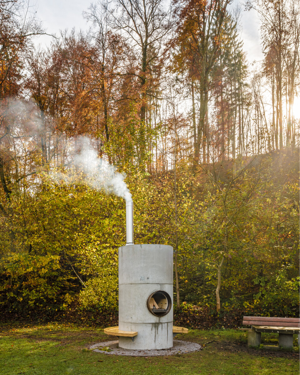 The American artist Oscar Tuazon has created an impressive social sculpture on the forest edge in Baden: «Lighthouse» – a sculptural fireplace made of concrete, steel and wood, conceived as a gathering place for people of all ages.