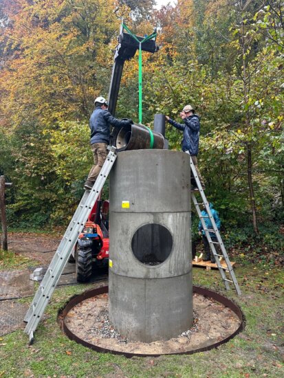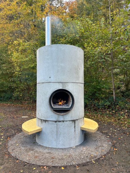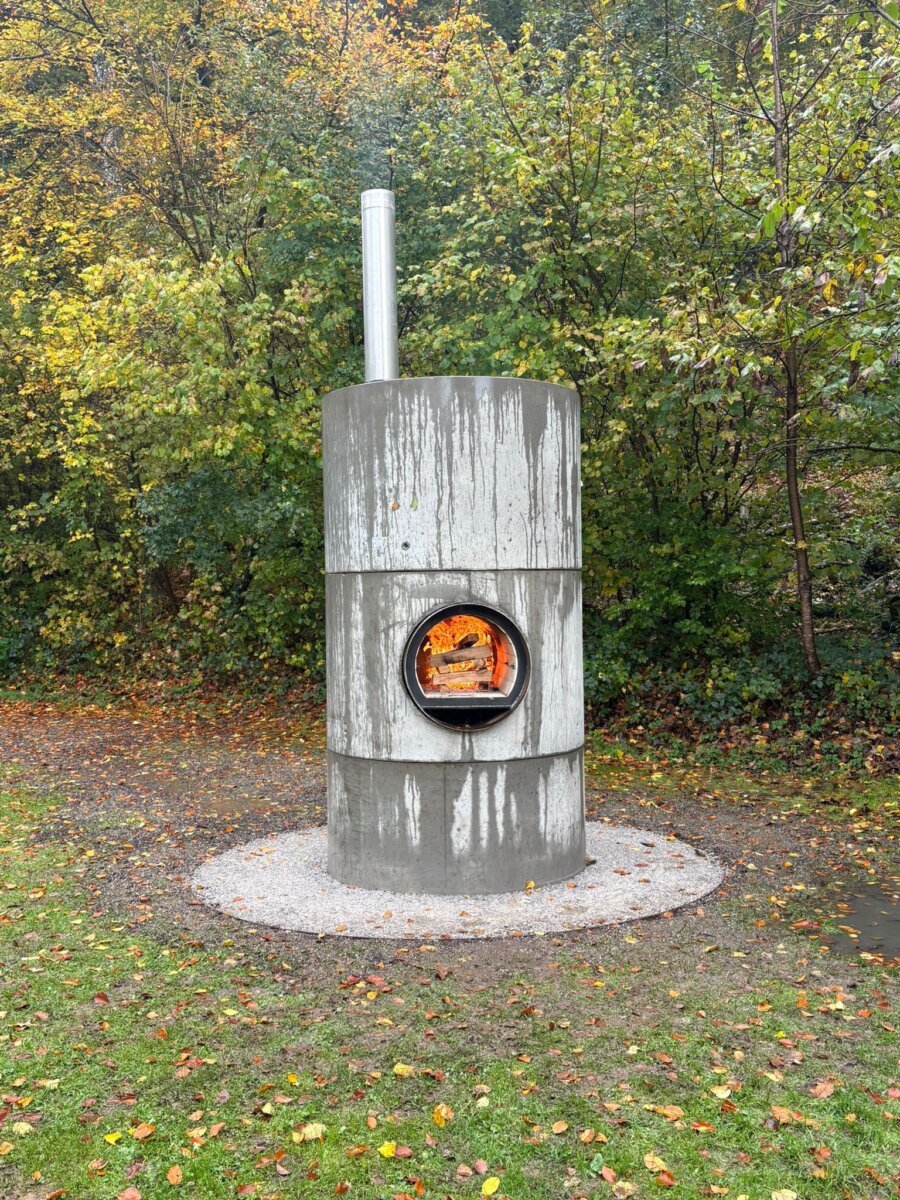 The American artist Oscar Tuazon has created an impressive social sculpture on the forest edge in Baden: «Lighthouse» – a sculptural fireplace made of concrete, steel and wood, conceived as a gathering place for people of all ages.